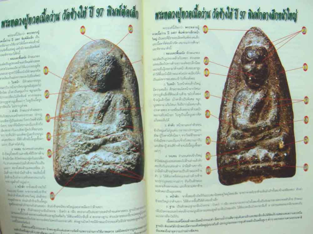 พระหลวงปู่ทวดเนื้อว่าน เป็นพระที่มีความแปรเปลี่ยนในเรื่องพิมพ์ทรงสูง เพราะแม่พิมพ์ของพระรุ่นนี้ เป็นเนื้อครั่ง จึงไม่คงทนเหมือนแม่พิมพ์ที่เป็นโลหะ ท่านจะเห็นว่าพระพิมพ์เดียวกัน แต่ตำหนิบางองค์ติดบางองค์ไม่ติด นั้นอาจเป็นเพราะ แม่พิมพ์อาจมีการแปรเปลียน มีการแต่งความเรียบร้อยของตัวแม่พิมพ์ที่อาจจะชำรุดเสียหายให้ดีข้น เพราะฉนั้นการพิจารณาหลวงปู่ทวด เนื้อว่าน ต้องพิจารณาจากพิมพ์พระ เนื้อพระ ธรรมชาติของพระ คือต้องพิจารณาทั้งหมด ทุกส่วนขององค์พระ จึงจะมีบทสรุปแท้-เก๊ ความหนา 120 หน้า กระดาษอย่างดี |