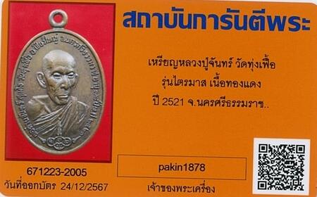 เหรียญรุ่น 2 พ่อท่านจันทร์ วัดทุ่งเฟื้อ ปี2521 เนื้อทองแดงโลหะผสม