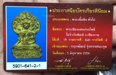 พระเชียงแสน พิมพ์ปรกโพธิ์ พิมพ์ใหญ่ จังหวัดเชียงราย ปิดทองล่องชาดมาแต่เดิม ๆ เลี่ยมทองใบใหญ่ ขนาดประมาณ 3 นิ้ว 2 หุน * 2 นิ้ว ทองก็คุ้มแล้วครับ พร้อมภาพประกาศนียบัตรรางวัลที่ 2 (ยังหาบัตรไม่เจอนะครับ มีแต่ภาพยืนยัน) ลงนามโดย พยัพ คำพันธุ์ นายกสมาคมผู้นิยมพระเครื่องพระบูชาไทย ส่งฟรีทั่วไทย รับประกันตามกฎครับ |