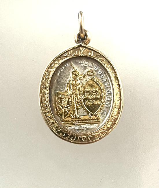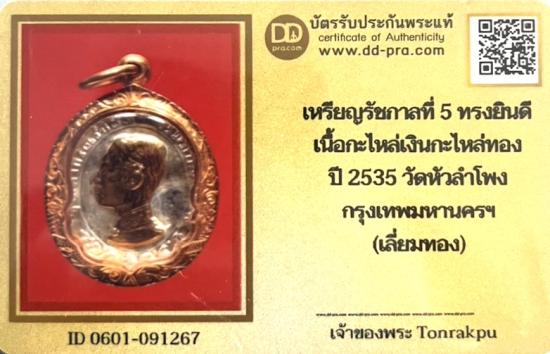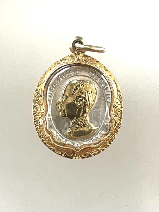 เหรียญ ร 5ทรงยินดี วัดหัวลำโพง ปี2535 เลี่ยมทอง พิมพ์เล็ก (ขนาดเท่าเหรียญบาท)