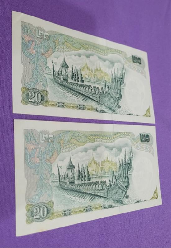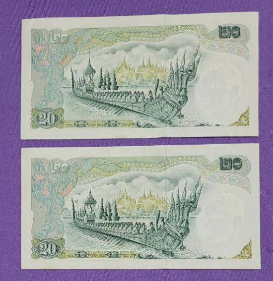 ธนบัตร 20 บาท หลังเรืออนันตนาคราช 2 ฉบับ เลขเรียง |