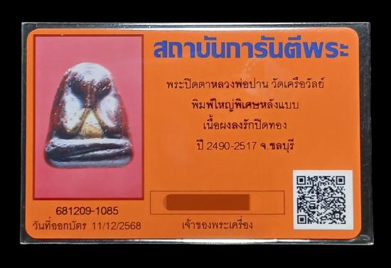 เคาะเดียวต่ำกว่าทุน...ปิดตาหลวงพ่อปาน วัดเครือวัลย์ ชลบุรี พิมพ์ใหญ่พิเศษหลังแบบ เนื้อผงลงรักปิดทอง ปี 2490-2517 พระคัดสวยๆมาเลยครับ พร้อมบัตรรับรองจากทางเว็บ |