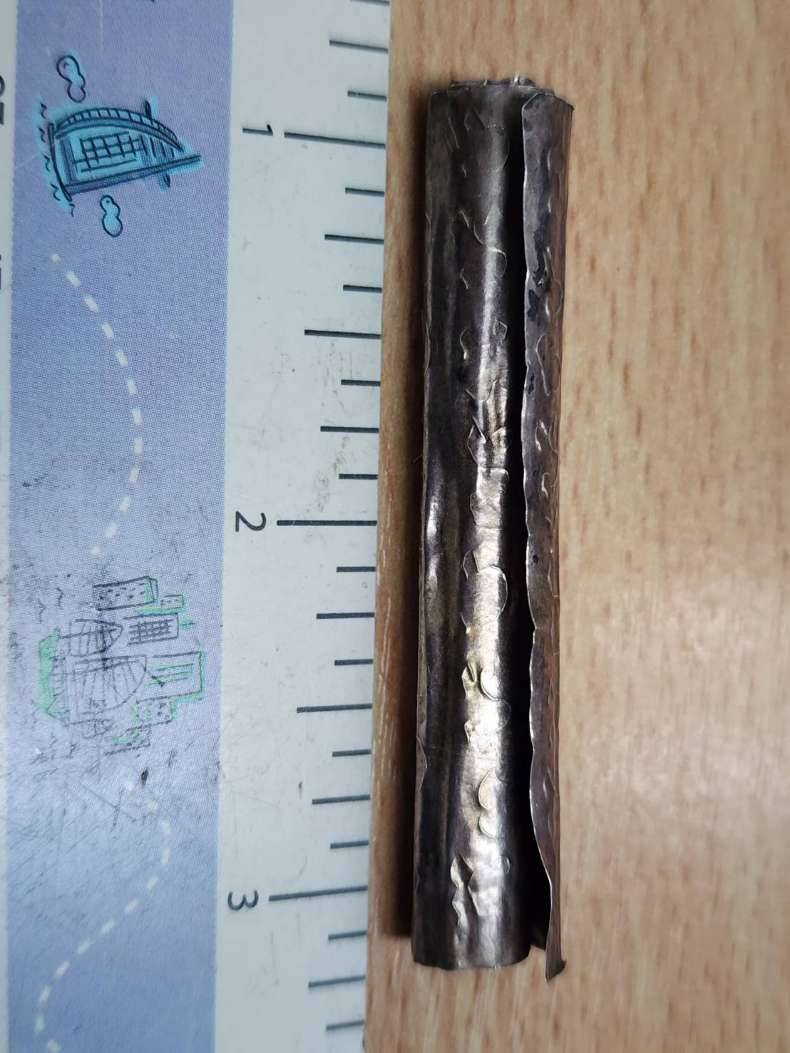 ตะกรุดเงินเก่า ยาว3นิ้ว ไมทราบที่ (ตะกรุดเป็นแผ่นเงินแท้) |
