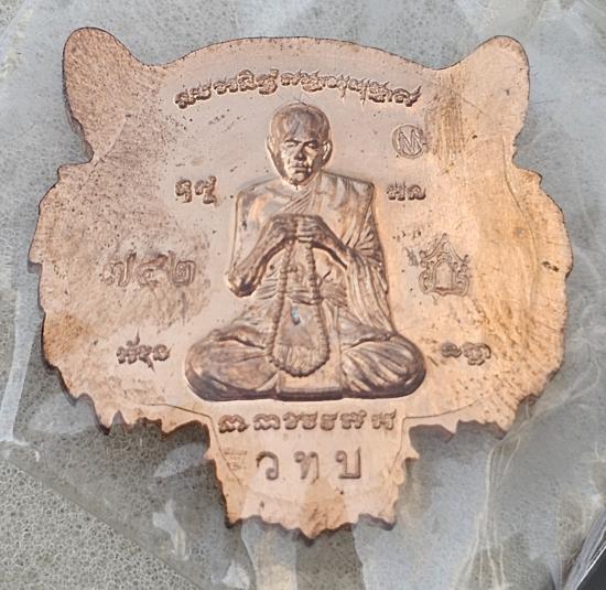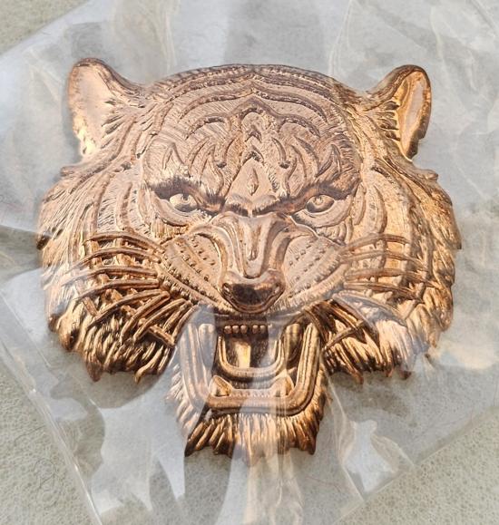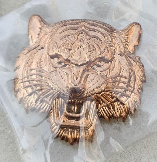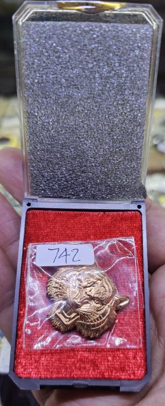 เหรียญหัวเสือหรือหน้าเสือ เนื้อทองแดง พร้อมกล่องเดิม ๆ เสือนอนกิน อ.ต้อม วัดท่าสะแบง