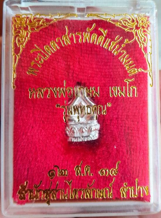 พระปิดตาสารพัดดีแช่น้ำมนต์ หลวงพ่อเกษม เขมโก เนื้อเงิน รุ่นพุทธคุณ ปี 38 พร้อมกล่องเดิม