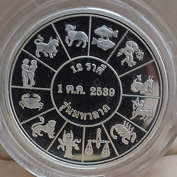 ((999))เหรียญรัชกาลที่ 5 หลัง 12 ราศี รุ่น มหาลาภ ปี2539 เนื้อเงินขัดเงาพ่นทราย บล็อคเพิร์ธมิ้นท์ ออสเตรเลียขอบสตางต์