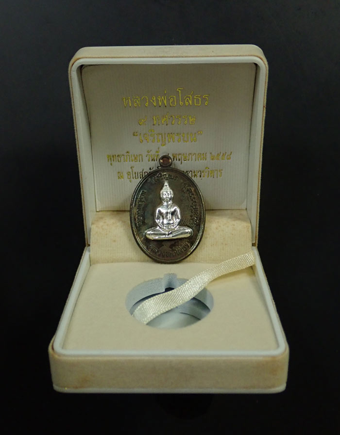 เหรียญรูปไข่เจริญพรบน (รุ่นแรก) หลวงพ่อโสธร รุ่น 9 ทศวรรษ ปี 2558 เนื้อนวะหน้ากากเงิน หมายเลข 23 พร้อมกล่องเดิม (พระสูงขนาด 3.4 ซ.ม.)