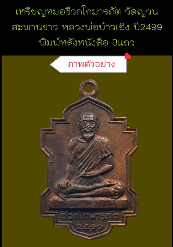 เหรียญหมอชีวกโกมารภัต วัดญวนสะพานขาว #หลวงพ่อบ๋าวเอิง ปี2499 พิมพ์หลังหนังสือ 3แถว เนื้อทองแดง |