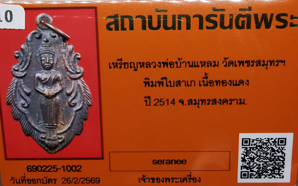 เหรียญหลวงพ่อวัดบ้านแหลม วัดเพชรสมุทรฯ เนื้อทองแดง ห่วงเดิม ปี2514 จ.สมุทรสงคราม + บัตร G-pra สภาพเดิมค่ะ |