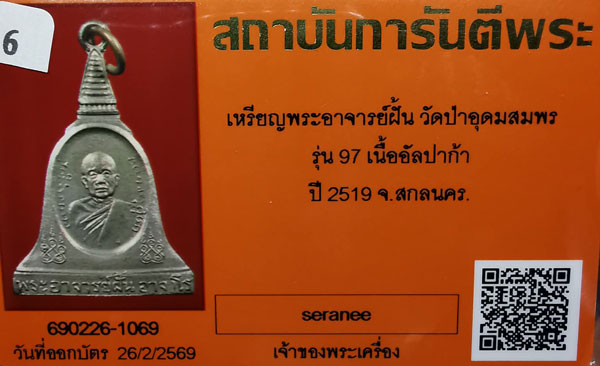 เหรียญพระอาจารย์ฝั้น วัดป่าอุดมสมพร รุ่น97 เนื้ออัลปาก้า ห่วงเดิม ปี2517 จ.สกลนคร + บัตรG-pra สภาพสวยเดิมค่ะ สภาพตามรูปทุกประการค่ะ