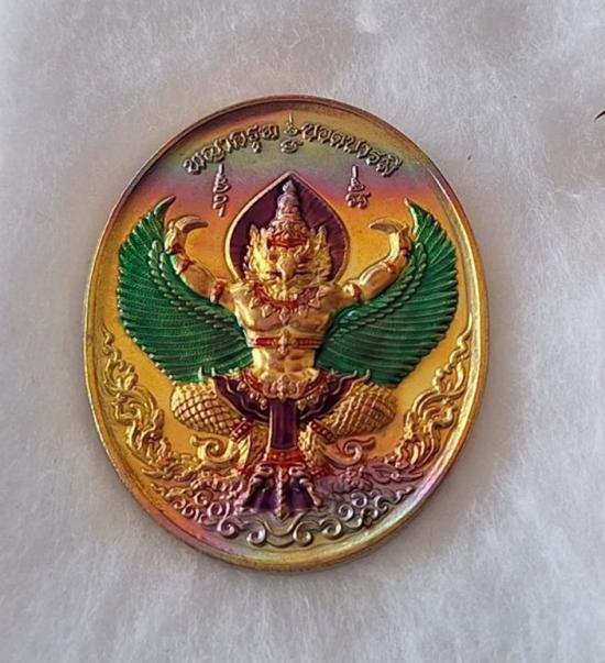เหรียญพญาครุฑ หลวงปู่ศิลา วัดโพธิ์ศรีสะอาด รุ่นยอดบารมี ลังนำฤกษ์ เนื้อทองทิพย์ผิวรุ้งลงยา No.24 |