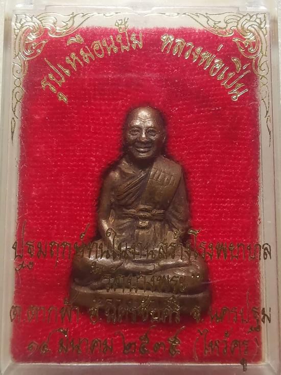 รูปหล่อปั๊มรุ่นแรก หลวงพ่อเปิ่น วัดบางพระ นครปฐม ตอกโค๊ดชัดเจน สวยเดิม เนื้อทองแดง ปี2535 |
