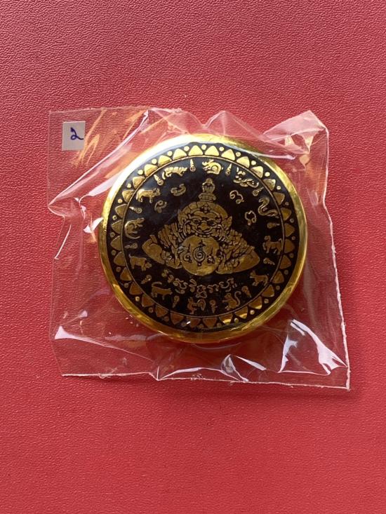 เคาะเดียวแดง สีผึ้งพระราหู รุ่น มงคลจักรวาล เนื้อ โลหะชุบทองลงยาสีดำขอบสีดำ ขนาด 5ซม |