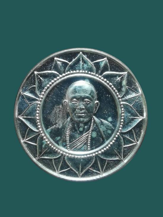 เหรียญกลมเล็กหมดเคราะห์ ครูบาอริยชาติ วัดแสงแก้วโพธิญาณ เนื้อเงิน ปี 2555 |