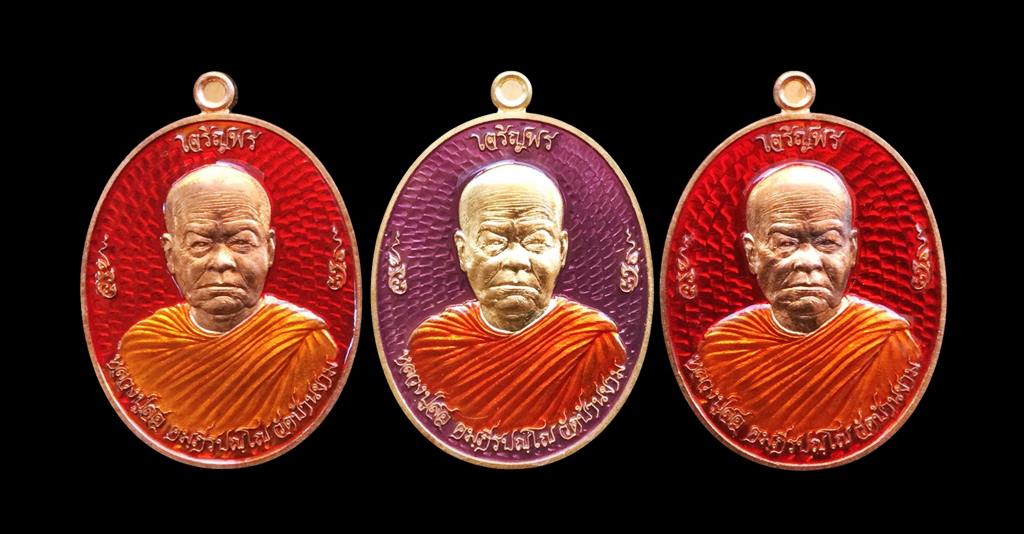 +!!เคาะเดียวllดง ตลอดสาย!!+ (รับชุด 3 เหรียญ) เหรียญเจริญพร หลวงปู่สอ วัดบ้านขาม จ.สุรินทร์ ปี2559 (เนื้อสัตตะลงยาม่วง+ทองแดงลงยาแดง) เลขโค้ดสวยๆตามรูป พร้อมกล่องครับ