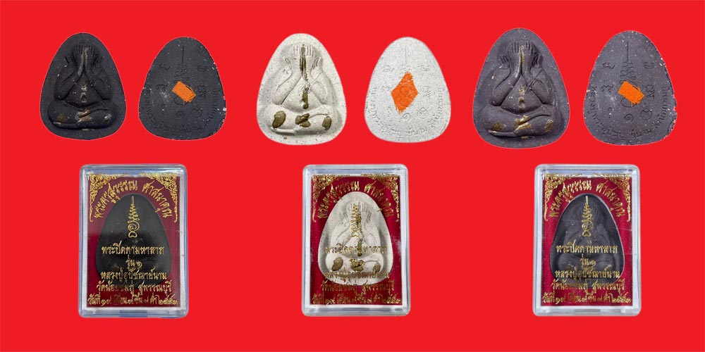 พระปิดตามหาลาภ รุ่นแรก หลวงปู่นาม วัดน้อยชมภู่ 3 องค์ 3 สี พร้อมจารหมึกทอง กล่องเดิม |