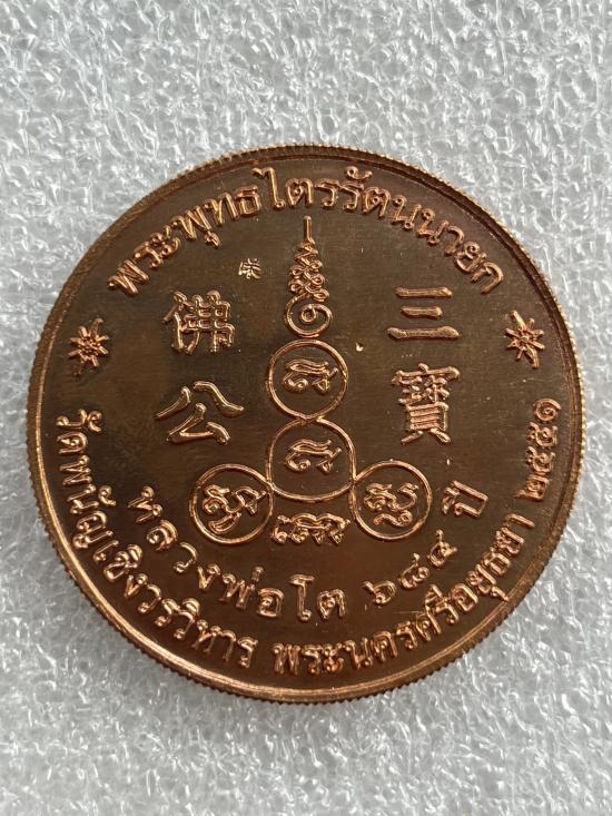 เหรียญบาตรน้ำมนต์พระพุทธไตรรัตนนายก รุ่นหลวงพ่อโต 684ปี วัดพนัญเชิง อยุธยา ปี2551 ขอบสตางค์ ผิวไฟเต็ม |