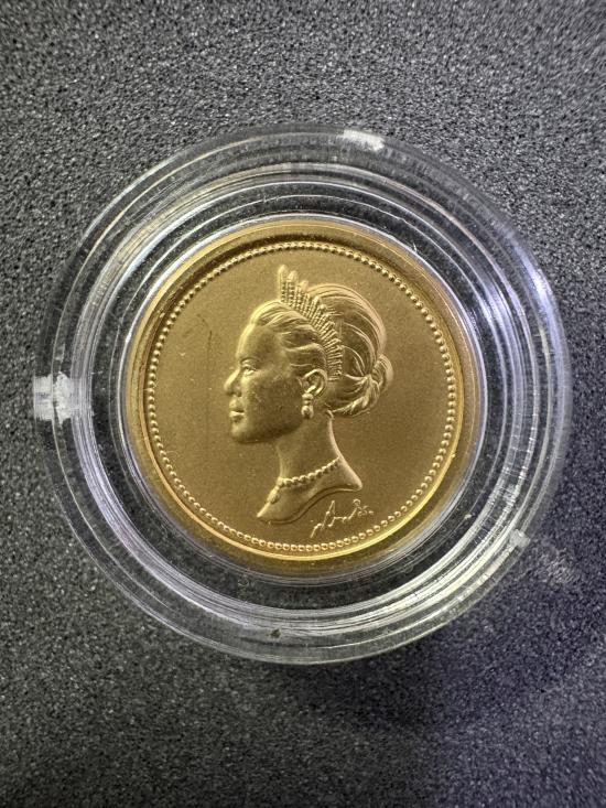 เหรียญราชินี ร.9 (พระพันปีหลวง) ชุดเบญจมหามงคล ปี2540 เนื้อทองคำ 99.99 หนัก 3กรัม พร้อมกล่องและเซอร์