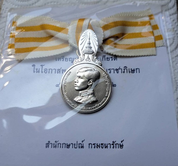 เหรียญที่ระลึกบรมราชาภิเษก รัชกาลที่ 10 ประดับแพรแถบ เนื้อเงิน ของแท้ สภาพสวยไม่ผ่านการใช้งาน