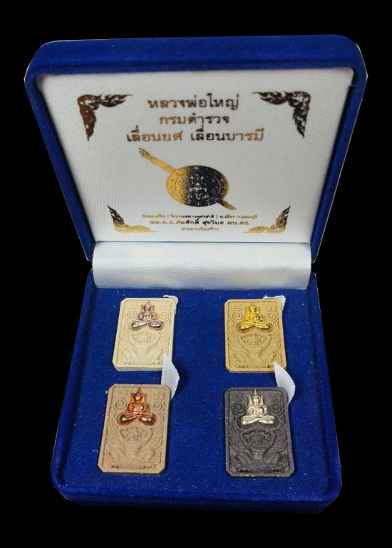 ชุดพระผงหลวงพ่อใหญ่ทรงครุฑ รุ่น กรมตำรวจ เลื่อนยศ เลื่อนบารมี วัดปราสาท จ.นนทบุรี เนื้อผงงานหน้ากากหลังฝังตราโล่ตำรวจเงิน 4 องค์ แดงเคาะแรก |
