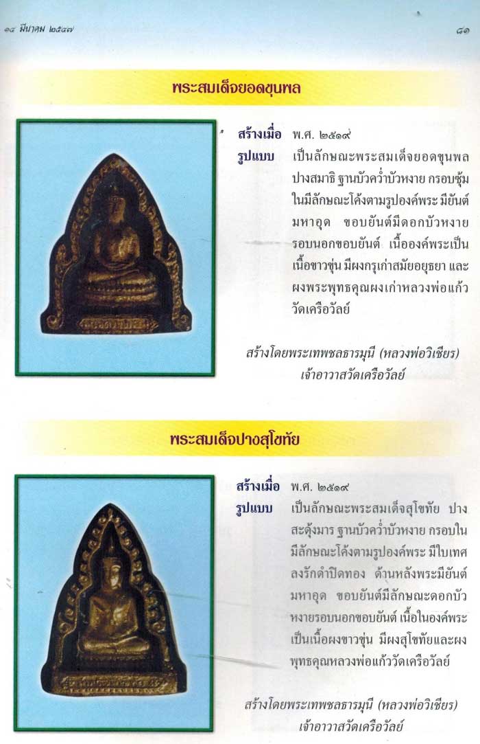 พระผงพิมพ์ปางสุโขทัย เจ้าคุณวิเชียร วัดเครือวัลย์ จ.ชลบุรี ปี 2519 สวยๆ |