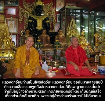 หลวงตาอ๋อยคือใคร ท่านที่เป็นศิษย์จะทราบกันดีว่า ท่านเป็นฆารวาสชุดแดง เป็นศิษย์หลวงปู่โลกอุดร ท่านเเป็นพญายมราชมาเกิดสร้างบารมี ศิษย์หวงและศรัทธากันมาก ตอนท่านยังไม่ละสังขาร ท่านแสดงฤทธิ์ให้เห็นบ่อยๆ จนเป็นเรื่องธรรมดา ท่านได้จัดสร้างวัตถุมงคลตามวาระได้สร้างวัด สร้างสำนัก เพื่อสืบทอดศาสนา และยังเป็นสหธรรมมิกกับหลวงตาม้า