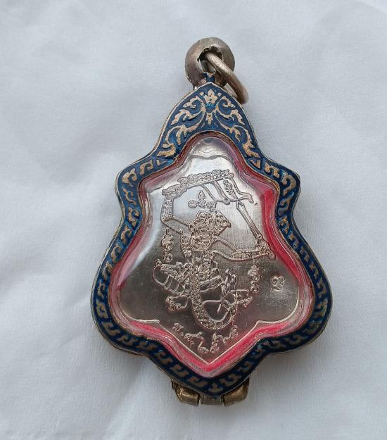 เหรียญหลวงพ่อกวยเนื้ออัลปาก้าออกปี 65 หลังหนุมานพิมพ์นิยม บล็อกสายฝน เลี่ยมเงิน |
