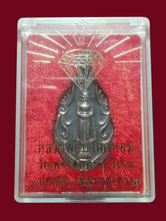 เหรียญใบสาเก ลพ.บ้านแหลม วัดเพชรสมุทรฯ เนื้อเงิน ปี2537 จ.สมุทรสงคราม พร้อมกล่องเดิม |