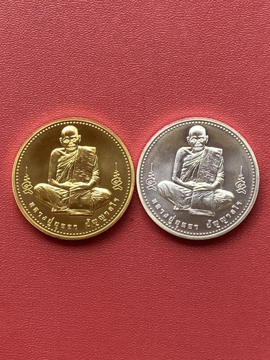 เคาะเดียวแดง หลวงปู่บุดดา รุ่น มหาจักรพรรดิ บล็อกกษาปณ์ เนื้อชุบทอง ชุบเงิน 2องค์ ขนาด3ซม |