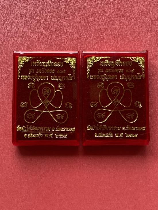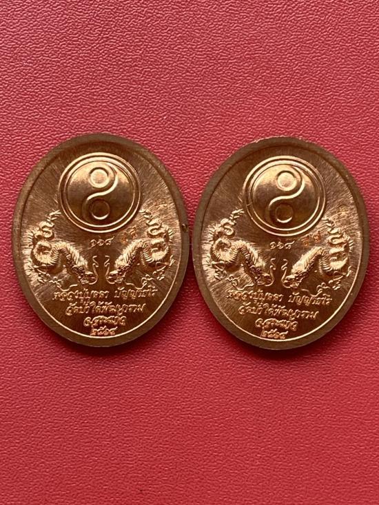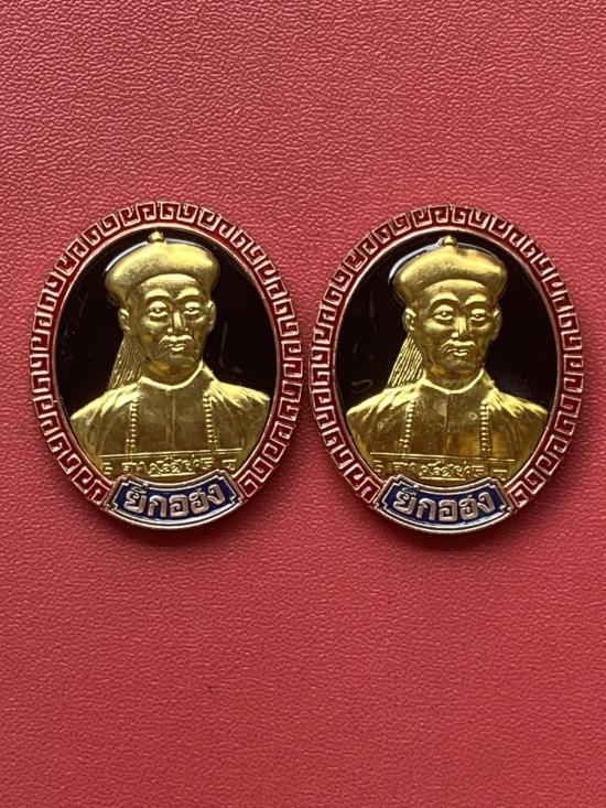 เคาะเดียวแดง หลวงปู่บุดดา ยี่กอฮง รุ่น เหนือดวง เนื้อ ทองแดงลงยาดำหน้ากากฝาบาตร 2องค์