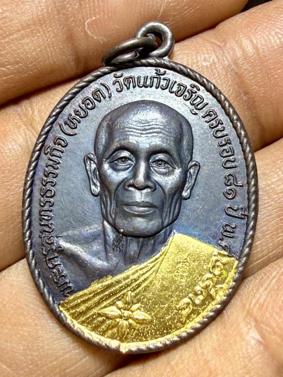 เหรียญหลวงพ่อหยอด วัดแก้วเจริญ รุ่นทรัพย์ล้นเหลือ ปี 2534 ครับ