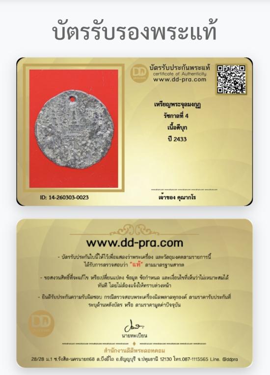 วัดใจ เหรียญพระจุลมงกุฏ - พระแสงจักร รัชกาลที่ 4 เนื้อดีบุก ปี 2433 สภาพใช้เจาะรูแขวน คุณปู่เป็นทหารอากาศเก่าเกษียณอายุ ท่านรับราชการกองบิน 5 ประจวบ สมัยญี่ปุ่นยกพลขึ้นบกก็ร่วมอยู่ในเหตุการณ์นั้นด้วย ท่านรับมาและกำชับว่าเป็นของหลวงพ่อเนียม วัดน้อย จ.สุพรรณบุรี การันตีที่มาจากต้นทาง พิจารณาดูก่อนครับ