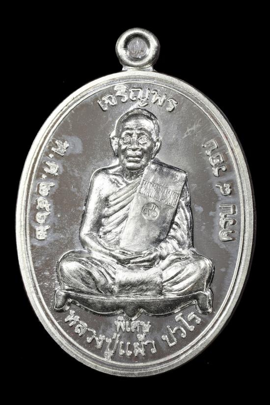 เหรียญเจริญพรบน หลวงปู่แผ้ว ปวโร ปี 62 เนื้อเงิน # 2577 พร้อมกล่อง+บัตรGครับ