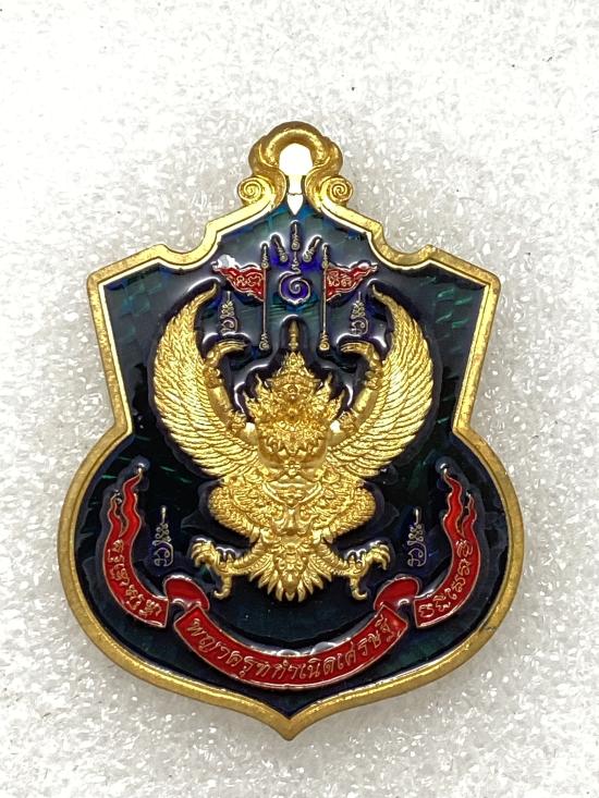 เหรียญพญาครุฑ ด้านหลังท้าวเวสสุวรรณ กฐินสามัคคีปี61 ครูบาวิรุต วัดสันมะเหม้า เนื้อทองแดงลงยา กล่องเดิม |