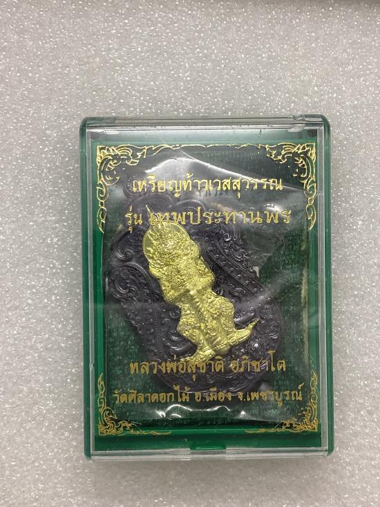 ชื่อพระเครื่อง เคาะเดียวแดง 100 เหรียญท้าวเวสสุวรรณ รุ่น เทพประทานพร หลวงพ่อสุชาติ วัดศิลาดอกไม้ จ.เพชรบูรณ์ เนื้อทองแดงรมดำ หน้ากากทองทิพย์ กล่องเดิม ( แจกศูนย์จอง )