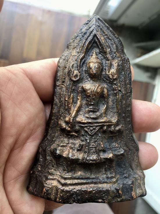 พระโคนสมอ กรุวังหน้า พิมพ์ปางมารวิชัย เนื้อดิน ลงรักปิดทอง ขนาด 2.5*4 นิ้ว |