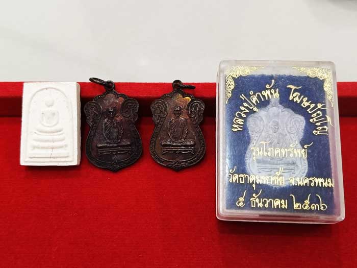 เหรียญรุ่นโภคทรัพย์ เนื้อตะกั่วมีกล่องเดิม (ฝากล่องเขี้ยวหัก)