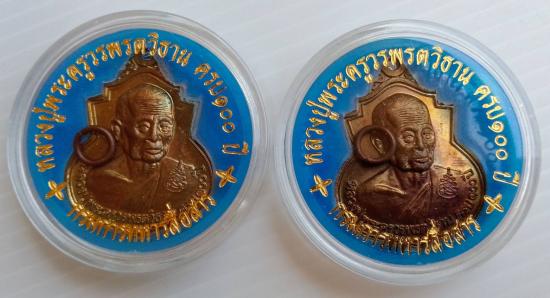 (1) เหรียญหลวงปู่วรพรตวิธาน รุ่น100 ปี วัดจุมพล จ.ขอนแก่น ปี 2543 กรมการทหารสื่อสารจัดสร้าง เนื้อทองแดงรับจำนวน 2 เหรียญ