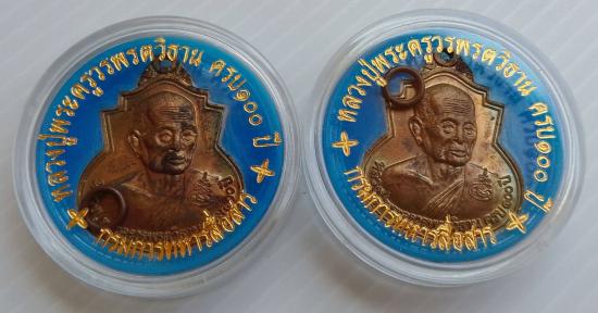 (2)เหรียญหลวงปู่วรพรตวิธาน รุ่น100 ปี วัดจุมพล จ.ขอนแก่น ปี 2543 กรมการทหารสื่อสารจัดสร้าง เนื้อทองแดง รับจำนวน 2 เหรียญ