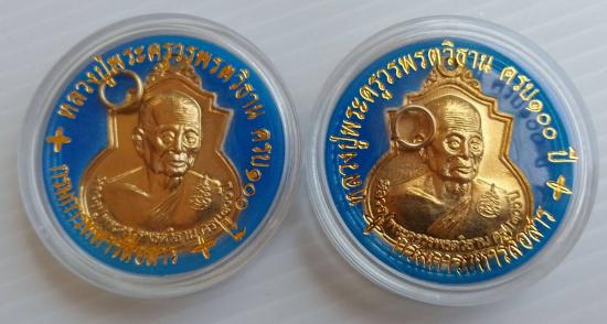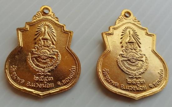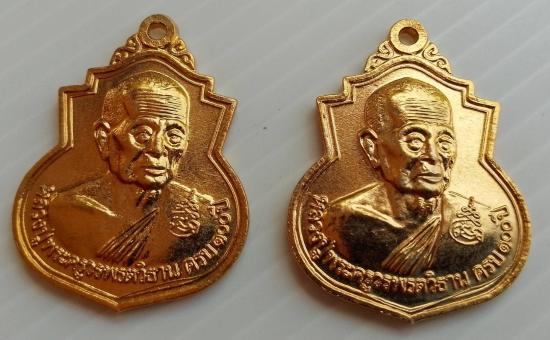 (2)เหรียญหลวงปู่วรพรตวิธาน รุ่น100 ปี วัดจุมพล จ.ขอนแก่น ปี 2543 กรมการทหารสื่อสารจัดสร้าง เนื้อฝาบาตรรับจำนวน 2 เหรียญ