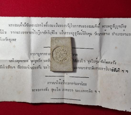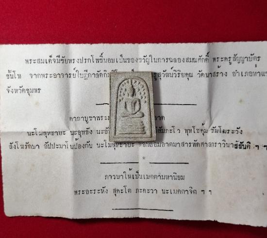 พระสมเด็จ-หลังยันต์ รุ่นแรก พิมพ์ปรกโพธิ์ หลวงพ่อเปียก วัดนาสร้าง จ.ชุมพร ปี2495 (ซองเดิม มีใบกำกับคาถา สภาพสวยมาก หายาก นิยม) |