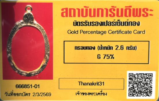 กรอบทองคำแท้ สั่งทำ พร้อมบัตรการันตีเปอร์เซนต์ทองจากการันพระ แบบสบายใจครับ |