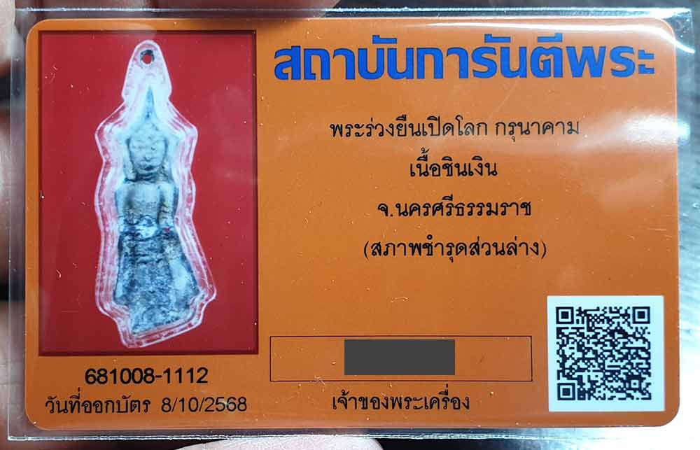 2.พระร่วงยืนเปิดโลก กรุนาคาม จ.นครศรีธรรมราช (สภาพชำรุดส่วนล่าง) พร้อมบัตร เคาะเดียวแดง 2,000
