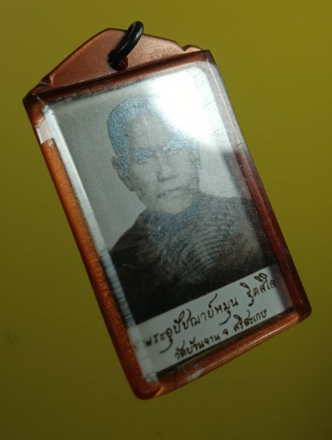 รูปถ่ายห้อยคอ หลวงปู่หมุน หน้าหนุ่ม เลี่ยมวินเทจ มีปรอทบางบาง ไม่ทราบปีแน่ชัด |