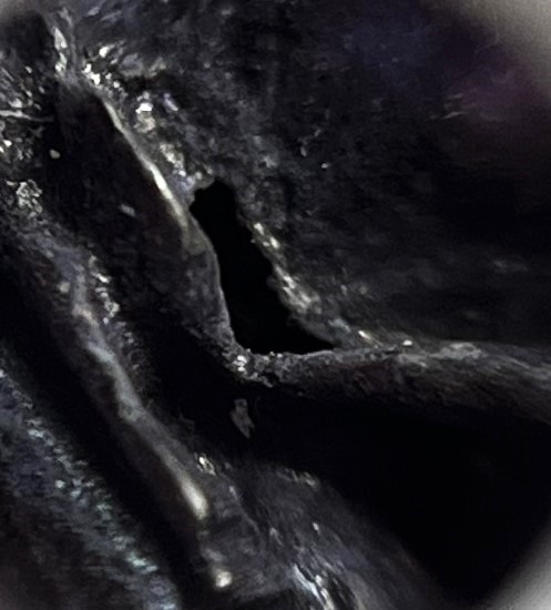 -เหรียญหล่อ จมูกยุบมีตำหนิทั้งบนล่าง + หล่อมีรูตำหนิ ด้านบนมือขวา