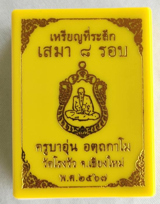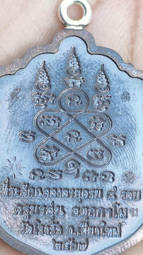 เหรียญเสมา๘รอบ ที่ระลึกวาระอายุครบ96ปี ครูบาอุ่น อัตถกาโม วัดโรงวัว จ.เชียงใหม่ (ศิษย์ครูบาศรีวิชัย) รก.ที่15 เนื้อนวะโลหะ ห่วงเชื่อมเงิน ฝังพลอยชมพู หลังยันต์ห้า ตอกโค๊ต"ยันต์นะ" หมายเลข 5 พร้อมกล่อง |