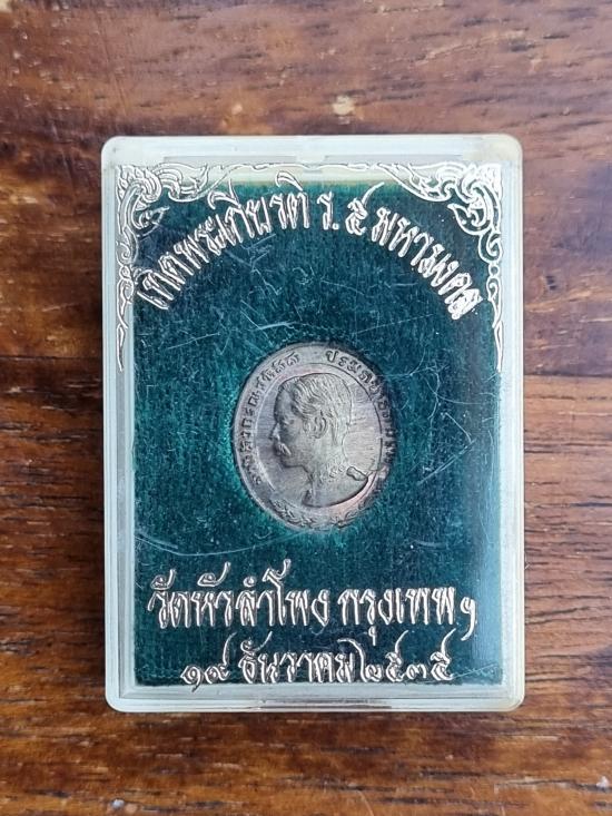 180 ++ เหรียญ ร.5 ทรงยินดี วัดหัวลำโพง ปี 35 พิมพ์เล็ก เนื้อนวะ พร้อมกล่องเดิม