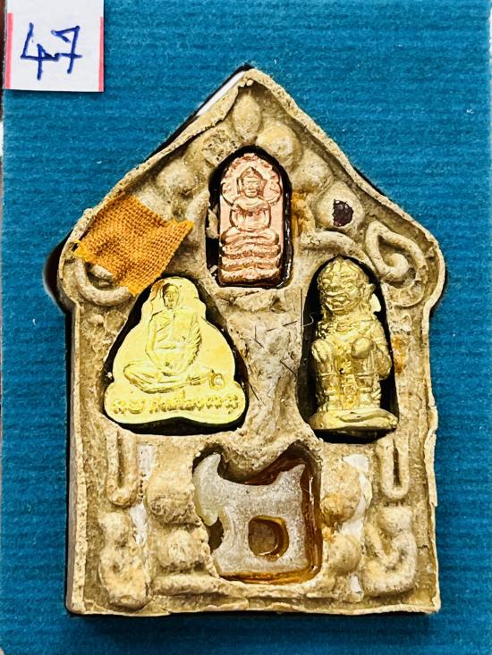 เนื้อว่าน ๑๐๘ หลังฝังตะกรุดเงิน5ดอก ปรก ปิดตาหลังรูปเหมือน หนุมาน แพะเขาควายเผือก จีวร หมายเลข 47 |