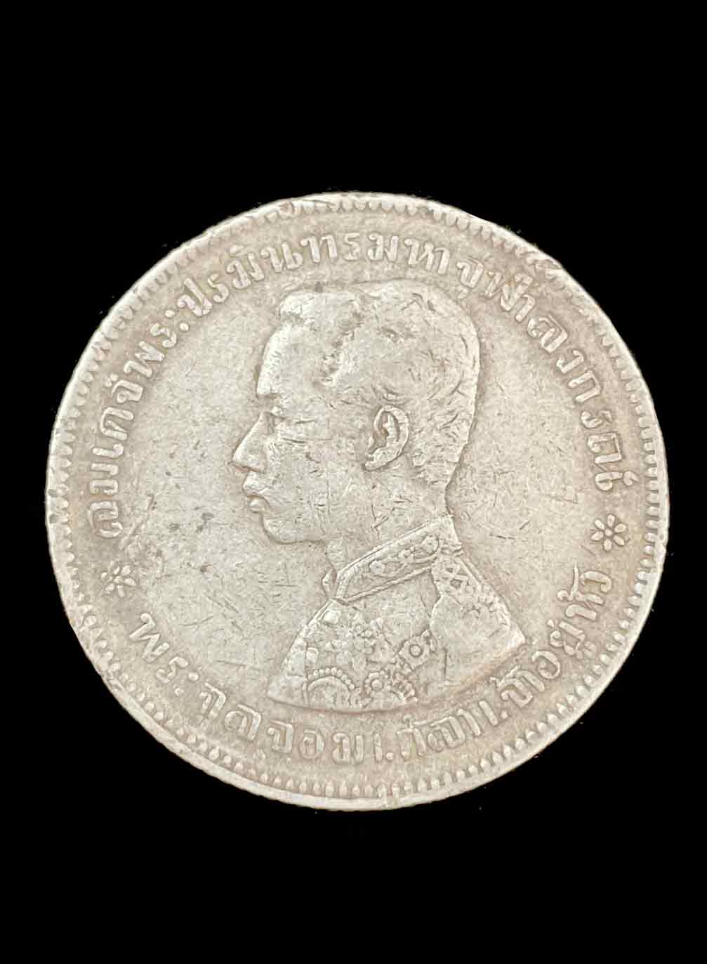 เหรียญเงิน บาทหนึ่ง รัชกาลที่ 5 หลังตราแผ่นดิน เนื้อเงิน น้ำหนัก 15 กรัม