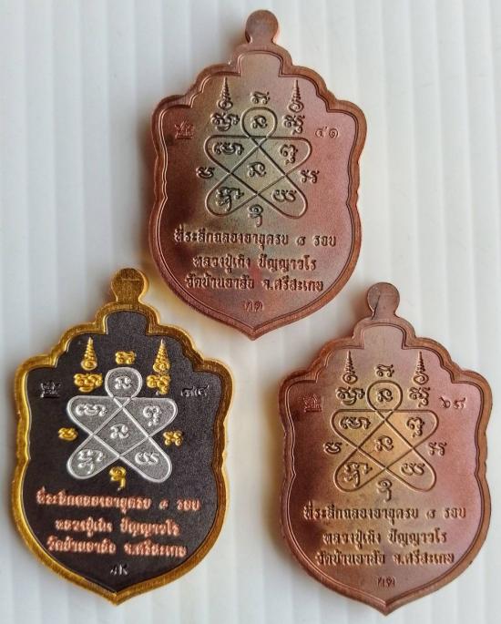 1. เนื้อทองแดง ผิวรุ้ง หน้ากากชุบเงินขอบชุบทอง ลงยาซุ้มแดงขอบแดงลงยาจีวร ตอกนัมเบอร์ 41